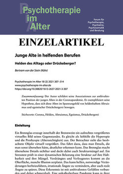 Der Autor schildert seine Assoziationen zur ambivalenten Position der jungen Alten in der Coronapandemie. Er exemplifiziert seine Hypothese, dass sich diese Alten im Spannungsfeld von heldenhaftem Altruismus und egoistischer Drückebergerei bewegen.
