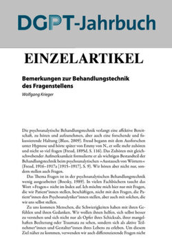 Wolfgang KriegerS. 189–202Bemerkungen zur Behandlungstechnik des Fragenstellens (PDF)