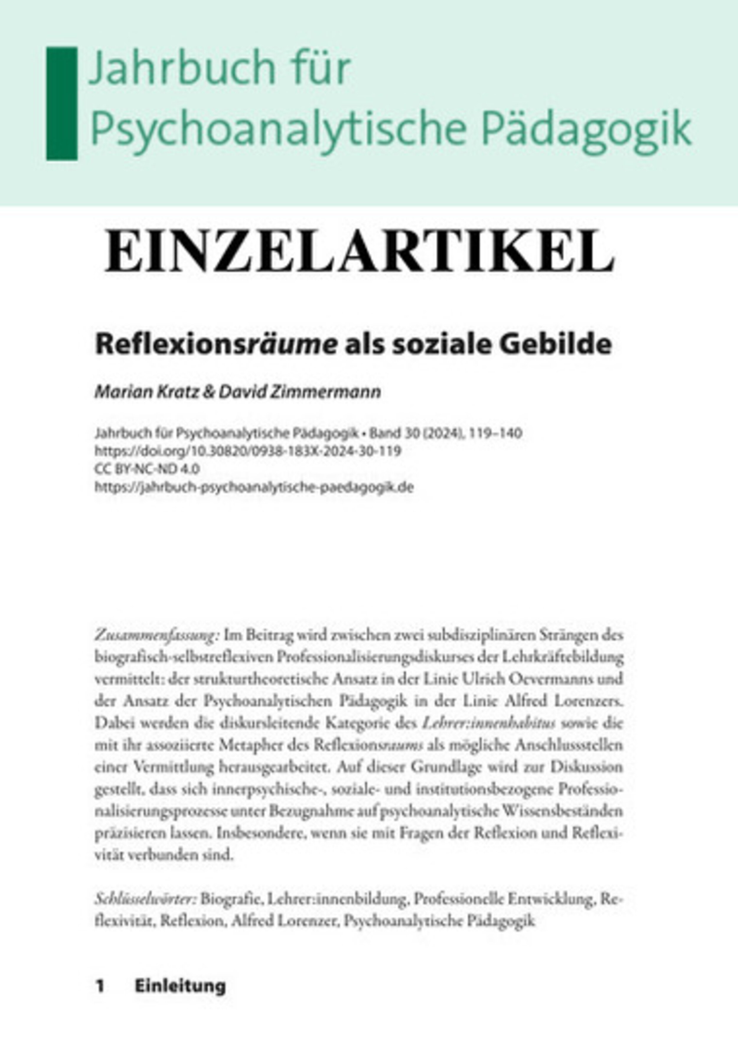 Marian Kratz & David Zimmermann S. 119–140Reflexionsräume als soziale Gebilde (PDF)