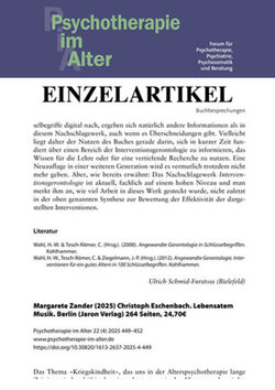 Einige Gedanken zur TransgenerationalitätZum Titelbild von Markus Hagen, KI-generiert mit dem Programm PerplexityUlrich Schmid-FurstossS. 447–449Rezension von: Paul Gellert, Hans-Werner Wahl (Hg) (2024) Interventionsgerontologie (PDF)