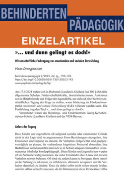 Wissenschaftliche Fachtagung zur emotionalen und sozialen EntwicklungBettina Eckert ZieglerS. 197–199Aus der Verbandsarbeit (PDF)