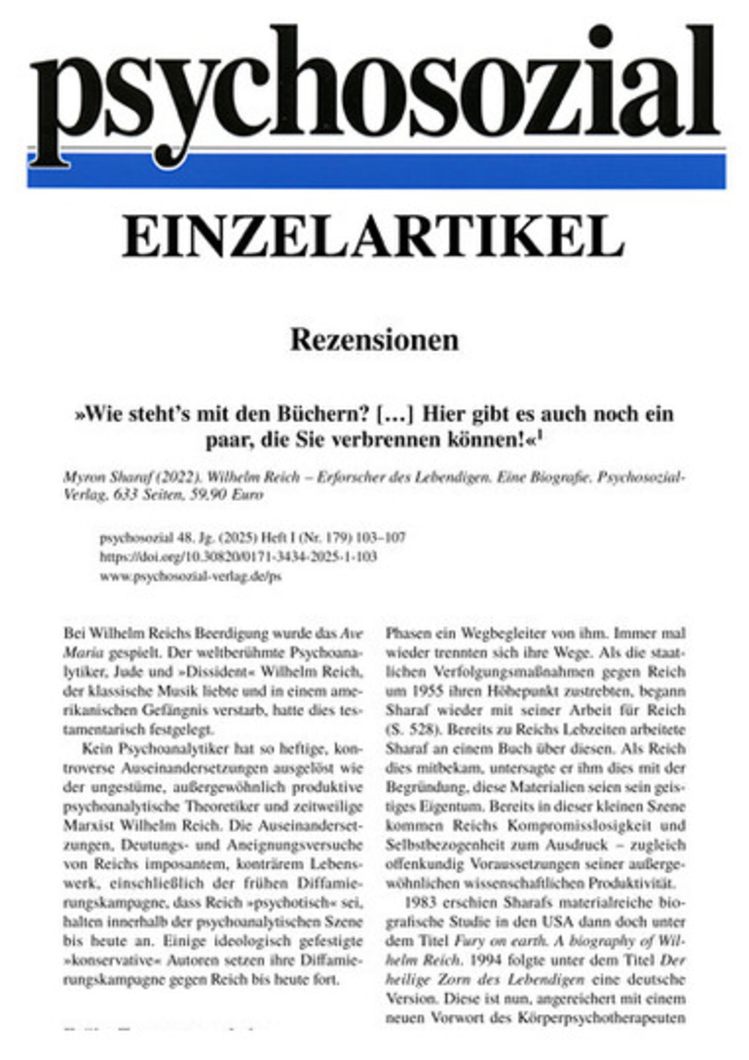 Rezension von: Myron Sharaf (2022). Wilhelm Reich - Erforscher des Lebendigen (PDF)