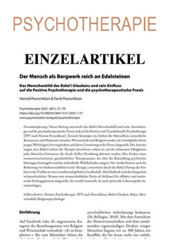 Dieser Beitrag untersucht das Bahá’í-Menschenbild und seine Auswirkungen auf die psychotherapeutische Praxis und auf die Positive und Transkulturelle Psychotherapie (PPT nach Nossrat Peseschkian). Zentrale Konzepte wie Einheit der Menschheit, menschliche Ressourcen, und Harmonie zwischen Wissenschaft und Religion werden als Grundpfeiler dieser jungen Weltreligion hervorgehoben und deren Umsetzung in der Praxis dargestellt. Die Autoren zeigen, dass Bahá’í-Lehren die Therapie bereichern, indem sie auf die inhärenten Fähigkeiten jedes Menschen hinweisen, die durch (Selbst-)Erziehung aktiviert werden. Dies fördert einen ressourcenorientierten, ganzheitlichen Therapieansatz, der über die Behandlung psychischer Störungen hinausgeht und das individuelle Wohlbefinden steigert. Der Artikel betont auch die Bedeutung von Kultursensibilität in der Therapie, unterstützt durch das Bahá’í-Prinzip der Einheit in der Vielfalt in einer zunehmend globalen Gesellschaft. Abschließend wird die Integration weltanschaulicher Themen mit wissenschaftlicher Praxis als Schlüssel für effektive und umfassende Heilungsprozesse dargestellt, die sowohl materielle als auch spirituelle Lebensaspekte berücksichtigen.