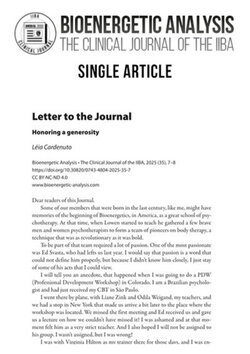 Observing Somatic Experience and Olfactory MemoryLen Carlino & Laurie Ure S. 37–52A Reflection on the Exquisite Amalgam of Bioenergetic Analysis (PDF)