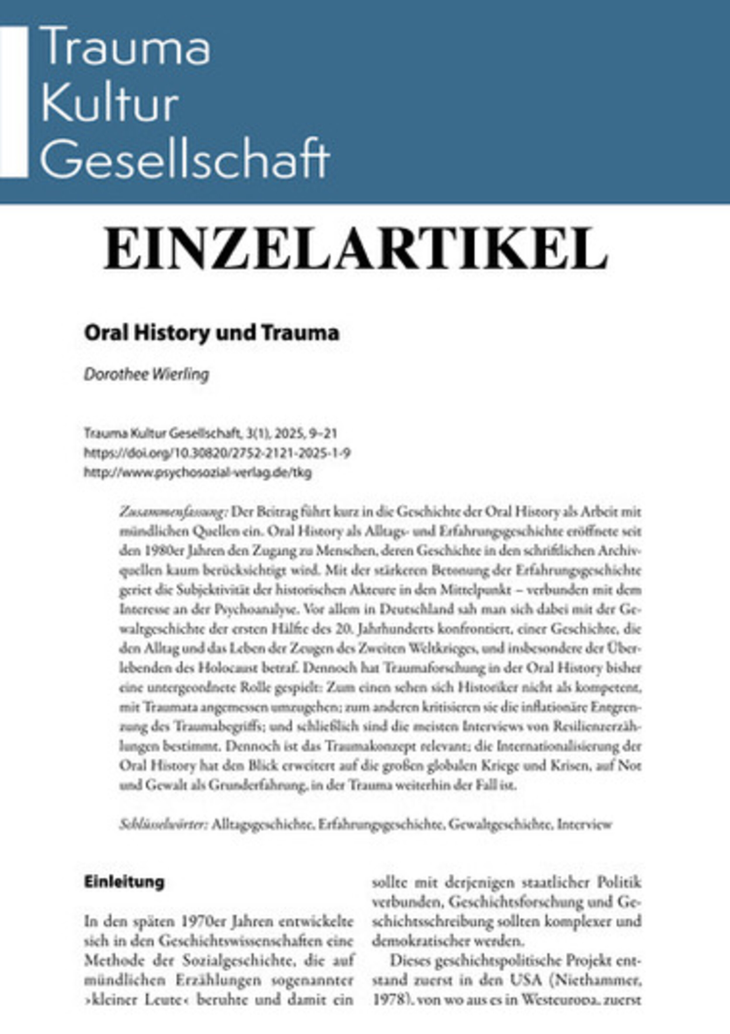 Trauma und Oral HistoryDorothee WierlingS. 9–21Oral History und Trauma (PDF)