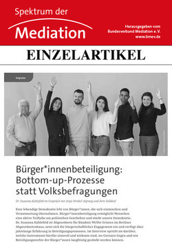 Ein Plädoyer für eine wehrhafte MediationBettina KnotheS. 41–43Mediation und Nachhaltigkeit (PDF)