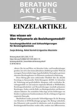 25 Jahre Herausgeberschaft Beratung aktuellSonja Bröning, Rahel Korinth & Agostino Mazziotta S. 15–33Was wissen wir über Polyamorie als Beziehungsmodell? (PDF)