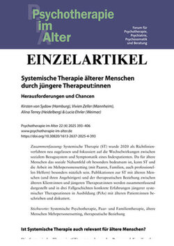 Kirsten von Sydow, Vivien Zeller, Alina Terrey & Lucia Ehrler S. 393–406Systemische Therapie älterer Menschen durch jüngere Therapeut:innen (PDF)
