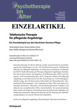 Ein psychodynamisches Gruppentherapiekonzept für hochbetagte stationäre Patient:innen mit kognitiven BeeinträchtigungenTanja Kalytta, Doreen Rother, Klaus Pfeiffer & Gabriele Wilz S. 65–79Telefonische Therapie für pflegende Angehörige (PDF)