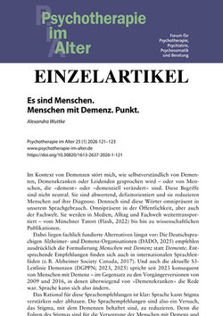 Erfahrungen aus einem akutpsychiatrischen stationären SettingAlexandra WuttkeS. 121–123Es sind Menschen. Menschen mit Demenz. Punkt. (PDF)