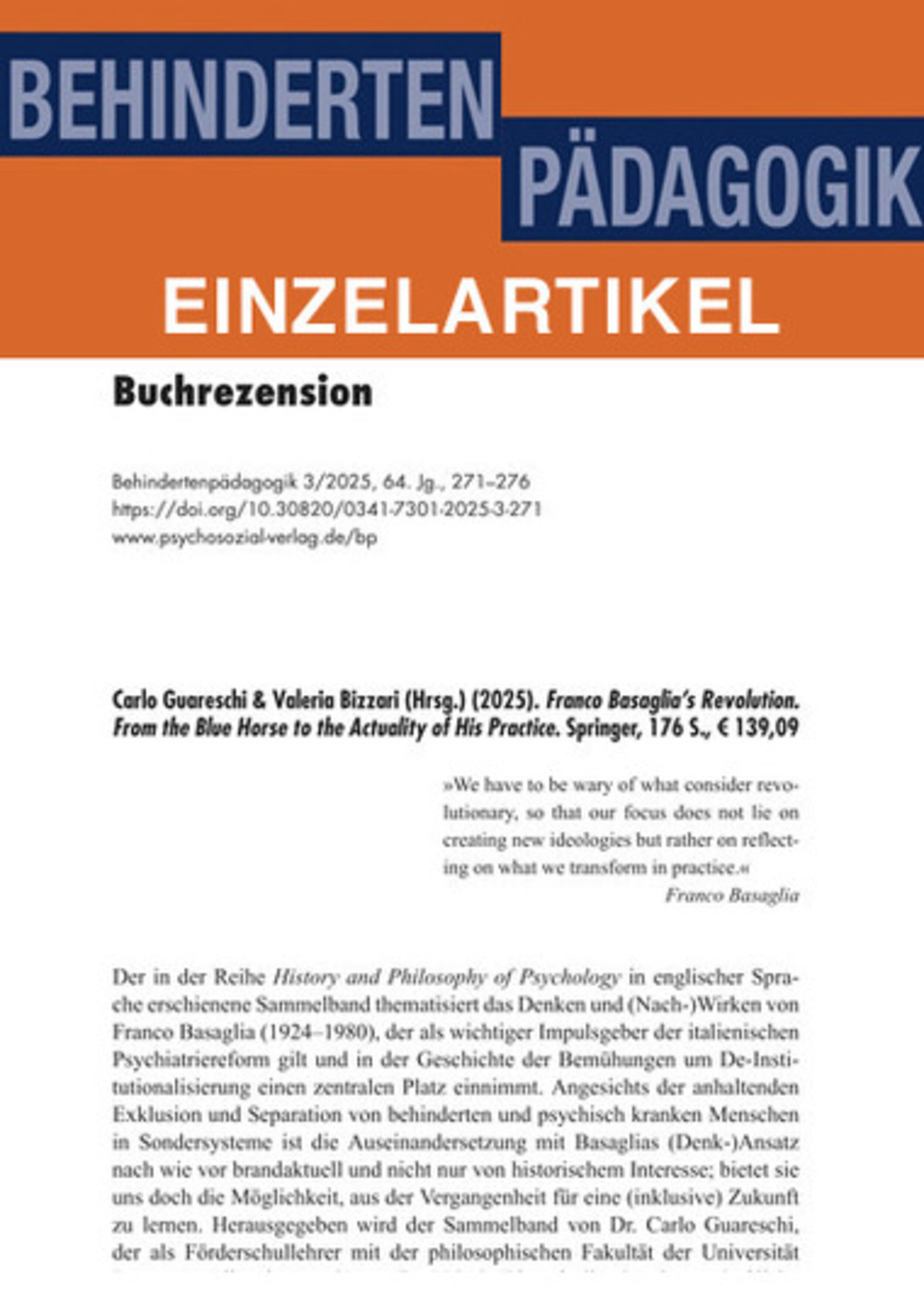 Rezension von: Carlo Guareschi & Valeria Bizzari (Hrsg.) (2025). Franco Basaglia’s Revolution (PDF)