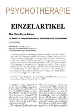 Nach einer Einführung in die besonderen Qualitäten christlicher Spiritualität wird an einem Fallbeispiel modellhaft veranschaulicht, wie biblische Ressourcen in den therapeutischen Prozess mit gläubigen Christen einbezogen werden können. In einem ersten Schritt werden mit Ansätzen der inneren Teamarbeit und der hypnotherapeutisch orientierten Ego-State-Therapie die inneren Anteile, die für das Problem relevant sind, eingeladen. Das Bild der Abendmahlsgemeinschaft oder einer inneren Tischgemeinschaft kann dabei den Zugang zu biblischen Ressourcen öffnen. Durch Fragen aus der Pesso-Arbeit beim Entwickeln einer Antidot mit der Vorstellung eines »idealen Gegenübers« kann in einem weiteren Schritt das persönliche Gottesbild erweitert werden. Dadurch wird auch verständlicher, um welches Bedürfnis es bei dem inneren Anteil geht, das besondere Not hat.