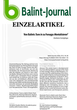 Der Beitrag zeichnet eine Entwicklungslinie von Michael Balints Konzept des Flash zu Peter Fonagys Theorie des Mentalisierens nach. Er beschreibt, wie sich das Verständnis der therapeutischen Beziehung über die Arbeiten von Daniel N. Stern, Beatrice Beebe, Michael B. Buchholz sowie Jeremy D. Safran und J. Christopher Muran verändert und vertieft hat. Im Zentrum steht die Frage, wie aus der unmittelbaren affektiven Resonanz eine dialogische und mentalisierende Haltung wird. Dabei wird das Konzept des epistemischen Vertrauens als zentrales Bindeglied zwischen frühen Beziehungserfahrungen und therapeutischer Praxis hervorgehoben.
