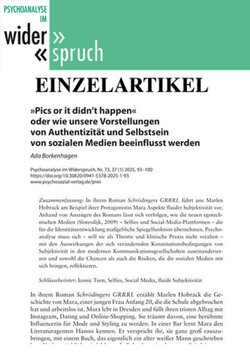 In her novel Schrödinger’s GRRRL, Marlen Hobrack shows us aspects of fluid subjectivity using the example of her protagonist Mara. Using excerpts from the novel, we can trace how the new ego-technical media (Sloterdijk) – selfies and social media platforms – take on the mirroring function that is crucial for identity development. If psychoanalysis does not want it to become outdated as a theory and clinical practice, it must deal with the effects of the changing constitutional conditions of subjectivity in modern communication society and reflect on both the opportunities and the risks that social media bring with them.