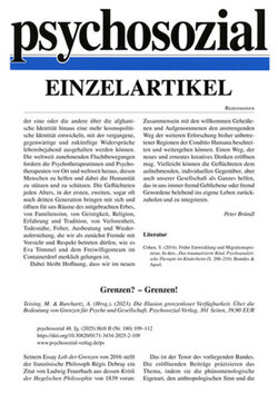 Zur Kontroverse zwischen Joel Whitebook und Axel HonnethPeter BründlS. 107–109Rezension von: Tömmel, S. E. (2023). Afghanen zwischen Herkunft und Ankunft: Zuflucht Deutschland? (PDF)