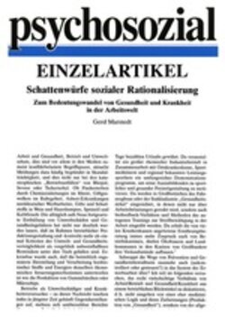 psychosozial 42 (1990), 63-73Gerd MarstedtS. 74–86Schattenwürfe sozialer Rationalisierung: Zum Bedeutungswandel von Gesundheit und Krankheit in der Arbeitswelt (PDF)