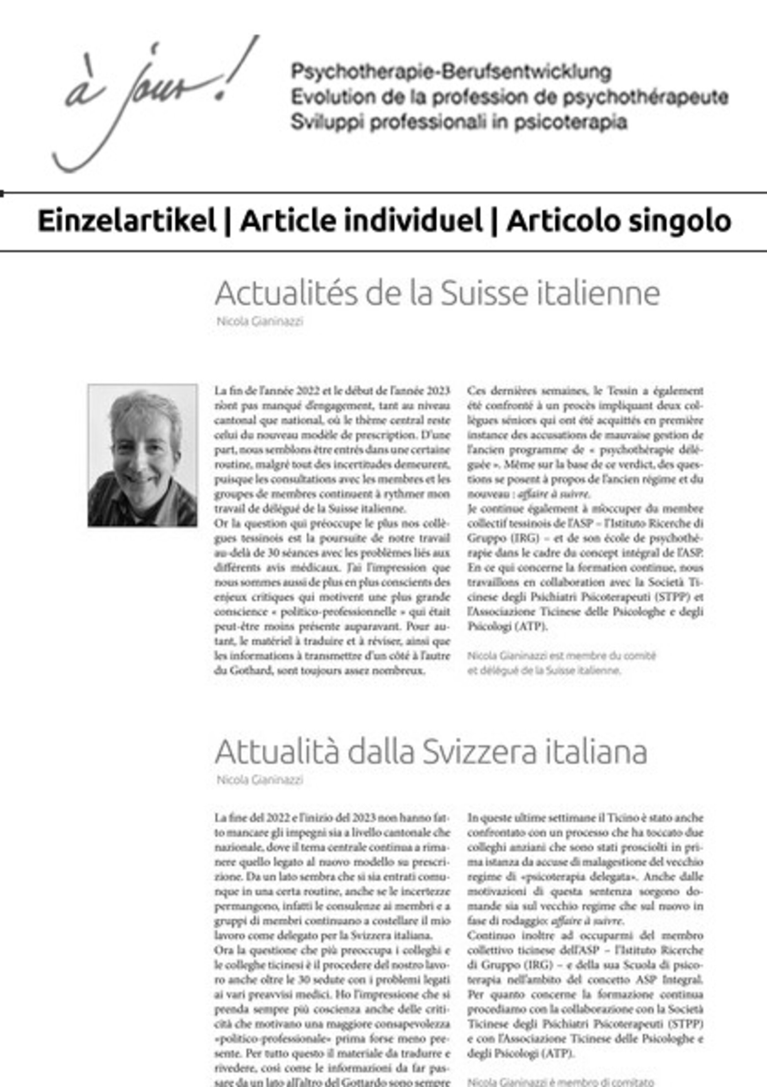 Nicola GianinazziS. 42Actualités de la Suisse italienne (PDF)