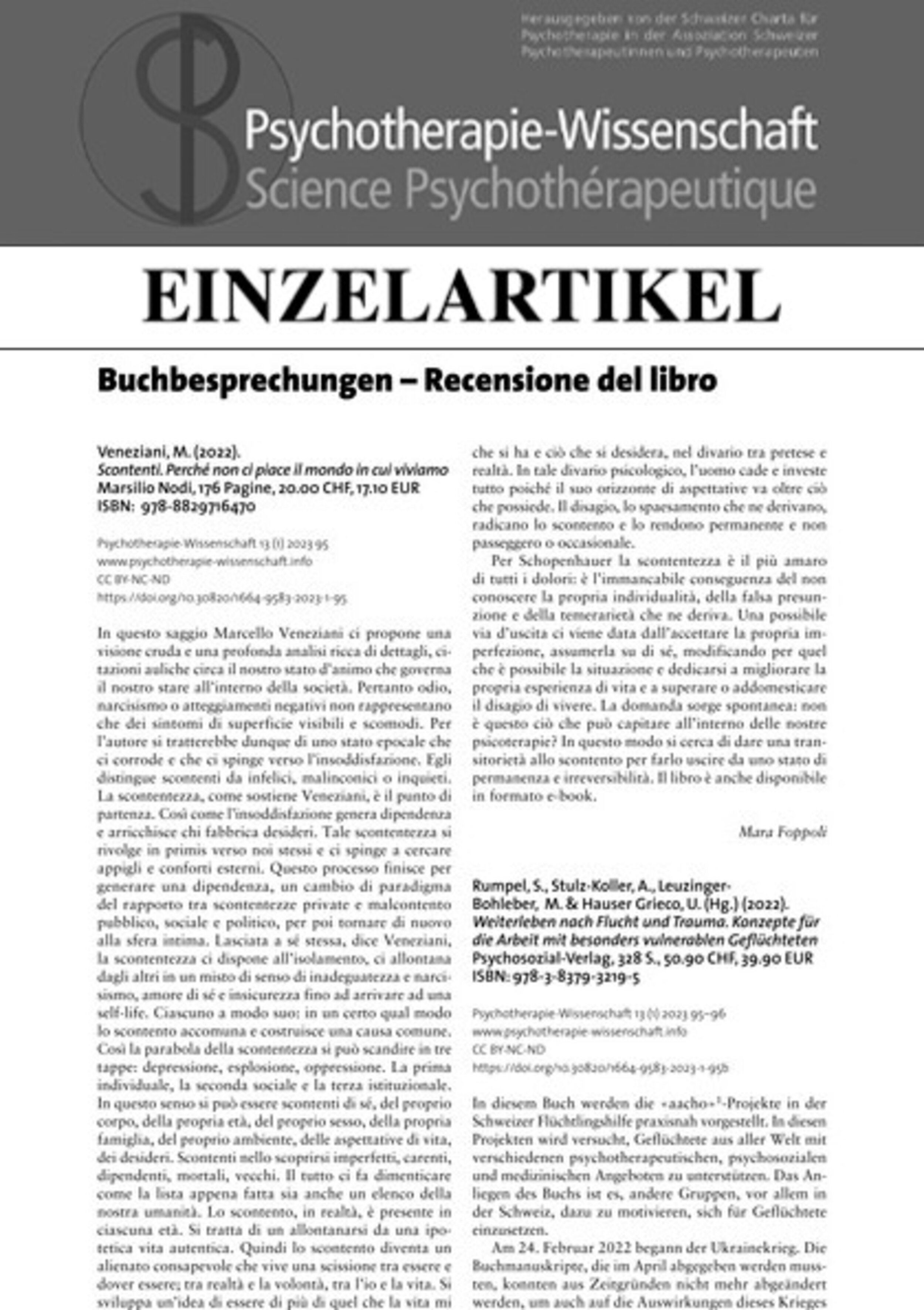 Rezension von: Rumpel, S., Stulz-Koller, A., Leuzinger-Bohleber, M. & Hauser Grieco, U. (Hg.) (2022). Weiterleben nach Flucht und Trauma (PDF)