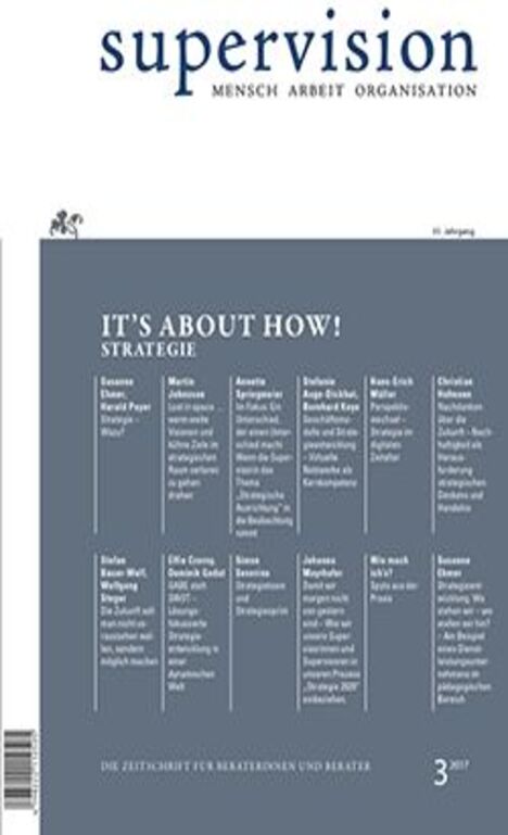 Johanna MayrhoferS. 48–49Damit wir morgen nicht von gestern sind. Wie wir unsere Supervisorinnen und Supervisoren in unseren Prozess »Strategie 2020« einbeziehen (PDF)