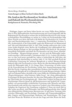 Psychoanalyse im Widerspruch 18 (1997), 87-100Martin BürgyS. 101–104Anmerkungen zu Klaus Gerhard Lickints Buch: »Die Analyse der Psychoanalyse: Struktur, Herkunft und Zukunft des Psychoanalysierens« (PDF)