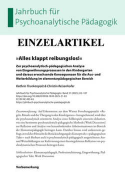 Based on the findings of the Viennese research project »Rules, Rituals and the Transition to Kindergarten«, the psychoanalytically oriented analysis of a case study is used to discuss how a specific psychoanalytical method (work discussion) can contribute to reflecting on and analysing challenging working situations in the field of early childhood education. Furthermore, it will be discussed how the consideration of Herbart’s concept of »pedagogical tact« can also contribute to the cultivation of a theory-based reflection of psychodynamic processes in continuing training.