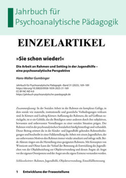 In der Sozialen Arbeit ist der Rahmen ein komplexes Gefüge, in dem soziale wie materielle, institutionelle und gesetzliche Vorbedingungen wirksam sind. In Körners und Ludwig-Körners Auffassung des Rahmens, die auf Goffman zurückgeht, ist er ein Gebilde, das die Beteiligten unter anderem durch ihre subjektiven, bewussten und unbewussten Vorstellungen zu einer sozialen Situation prägen. Der Rahmen wird in der psychoanalytischen Sozialarbeit häufig hinterfragt und verhandelt. Dieser Beitrag erörtert die in der Kinderund Jugendhilfe geltenden Rahmenbedingungen und beschreibt in einer Falldarstellung die Arbeit mit einem Jugendlichen, der aus unbewussten Motiven den Rahmen immer wieder attackiert und infrage stellt. Beide Akteure ringen um die Herstellung eines geeigneten Rahmens. Mit Konzepten von Winnicott und Oliner kann der Verlauf der Betreuung als Entwicklung des Jugendlichen von der Objektbeziehung zur Objektverwendung und dessen Ängste als Angst vor der eigenen Omnipotenz und der Angst um die eigene Existenz verstanden werden.