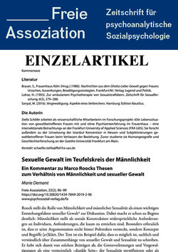 Ein Kommentar zu Marco Roocks Thesen zum Verhältnis von Männlichkeit und sexueller GewaltLisa Katharina GabrielS. 100–105Sexuelle Gewalt verstehen (PDF)