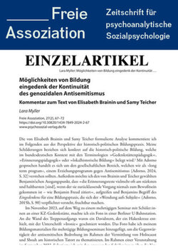 Kommentar zum Text von Elisabeth Brainin und Samy TeicherLara MyllerS. 67–72Möglichkeiten von Bildung eingedenk der Kontinuität des genozidalen Antisemitismus (PDF)