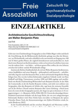 Über revisionistische Städtebaufantasien am Beispiel Frankfurt am MainLea FinkS. 51–59Architektonische Geschichtsschreibung am Walter-Benjamin-Platz (PDF)