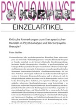 Psychoanalyse & Körper, Nr. 3 (2003), 23-43Peter GeißlerS. 45–74Kritische Anmerkungen zum therapeutischen Handeln in Psychoanalyse und Körperpsychotherapie (PDF)