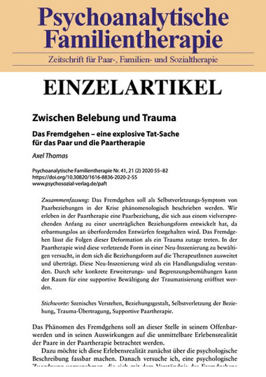 Das Paar und der Dritte - FremdgehenJürgen MaurerS. 9–53Fremdgehen oder fremd gehen: Symptom oder Normalität? (PDF)