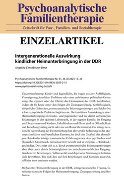Fremdsein, Parentifizierung und GeschlechtsidentitätAngelika Censebrunn-BenzS. 15–35Intergenerationelle Auswirkung kindlicher Heimunterbringung in der DDR (PDF)
