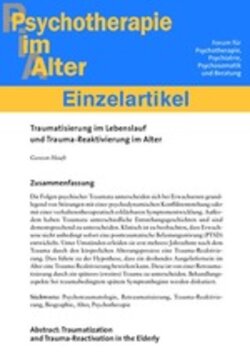 Traumatisierung im Lebenslauf und Trauma-Reaktivierung im Alter werden diskutiert. Die Folgen psychischer Traumata unterscheiden sich bei Erwachsenen grundlegend von Störungen mit einer psychodynamischen Konfliktentstehung oder mit einer verhaltenstherapeutisch erklärbaren Symptomentwicklung. Außer dem haben Traumata unterschiedliche Entstehungsgeschichten und sind dementsprechend zu unterscheiden. Klinisch ist zu beobachten, dass Erwachsene nicht unbedingt sofort eine posttraumatische Belastungsstörung entwickeln. Unter Umständen erleiden sie erst mehrere Jahrzehnte nach dem Trauma durch den körperlichen Alterungsprozess eine Trauma-Reaktivierung. Dies führte zu der Hypothese, dass ein drohendes Ausgeliefertsein im Alter eine Trauma-Reaktivierung bewirken kann. Diese ist von einer Retraumatisierung durch ein späteres (zweites) Trauma zu unterscheiden. Behandlungsaspekte bei traumabedingtem spätem Symptombeginn werden diskutiert.