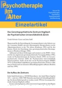Psychotherapie im Alter 2005, 2(2), 97-103Ursula Schreiter Gasser & Jutta Stahl S. 105–114Das Gerontopsychiatrische Zentrum Hegibach der Psychiatrischen Universität Zürich (PDF)