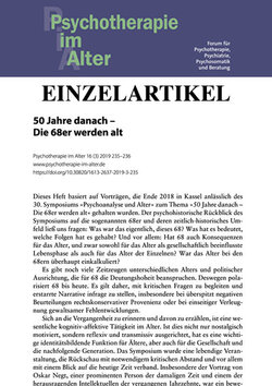 Eine Fallgeschichte im Kontext des Sozialistischen Patientenkollektivs (SPK)Gudrun BrockhausS. 275–287Die Identitätskrise der 68er als Schule des Alterns (PDF)
