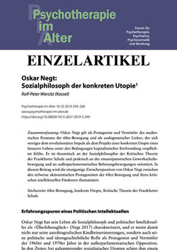 Oskar Negt gilt als Protagonist und Vermittler des studentischen Protestes der 68er-Bewegung und als undogmatischer Linker, der sich weniger dem revolutionären Impuls als dem Projekt einer konkreten Utopie eines besseren Lebens unter den Bedingungen kapitalistischer Entfremdung verpflichtet fühlte. Er ist theoretisch an der Sozialphilosophie der Kritischen Theorie der Frankfurter Schule und praktisch an der emanzipatorischen Gewerkschaftsbewegung und an außerparlamentarischen Befreiungsbewegungen orientiert. In diesem Beitrag wird die einzigartige Zwischenposition von Oskar Negt zwischen den teilweise aktionistischen Protagonisten der 68er-Bewegung und ihren kritischen intellektuellen Förderern thematisiert.