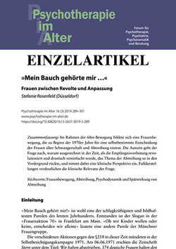 Im Rahmen der 68er-Bewegung bildete sich eine Frauenbewegung, die zu Beginn der 1970er Jahre für eine selbstbestimmte Entscheidung der Frauen über Schwangerschaft und Abtreibung eintrat. Die Autorin geht der Frage nach, warum ausgerechnet in der Zeit, als die Empfängnisverhütung revolutioniert und drastisch vereinfacht wurde, das Thema der Abtreibung so in den Vordergrund rückte, und nimmt dabei eine klinische Perspektive ein. Falldarstellungen verdeutlichen die klinische Relevanz der Frage.
