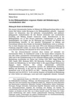 Behindertenpädagogik 2005, 44(3), 229-234Maria KronS. 235–244In den Bildungsdebatten vergessen: Kinder mit Behinderung in vorschulischem Alter (PDF)