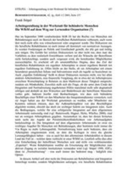 Behindertenpädagogik 2003, 42(1-2), 138-156Frank StöpelS. 157–172Arbeitsgestaltung in der Werkstatt für behinderte Menschen Die WfbM auf dem Weg zur Lernenden Organisation (?) (PDF)
