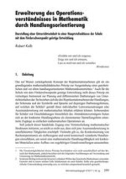 Das auf Bruner zurückgehende Konzept der Repräsentationsebenen gilt als ein grundlegendes mathematikdidaktisches Prinzip zur Ausgestaltung eines ganzheitlichen und vor allem handlungsorientierten Mathematikunterrichtes. Auch für die Schule mit dem Förderschwerpunkt geistige Entwicklung stellt dieses Prinzip ein vielseitiges Instrument zur Planung und differenzierten Darbietungen von Unterrichtsinhalten dar: So beziehen sich die drei Repräsentationsebenen der Handlungen, der Schemata und der Symbolik und Sprache auf diejenigen Darbietungsformen, auf welchen die Schüler gemäß ihren individuellen Lernvoraussetzungen eine Auseinandersetzung mit mathematischen Inhalten erfahren können. Insbesondere für Schüler mit Einschränkungen hinsichtlich des Abstraktionsvermögens bieten sich an der konkreten Handlungsebene als elementarster Darstellungsform orientierte Zugänge zu einfachen mathematischen Operationen an. Die in diesem Beitrag dargestellte Planung und Durchführung einer Unterrichtseinheit widmet sich der Frage, inwiefern eine Darbietung von Rechenoperationen auf den bereits genannten Repräsentationsebenen gestaltet werden kann, sodass eine Erweiterung des Operationsverständnisses auf den besagten Ebenen stattfindet. Zur Förderung einer bereits erwähnten mathematischen Handlungsfähigkeit erfolgt die Auseinandersetzung mit den entsprechenden Repräsentationsebenen strukturell angelehnt an das ebenso im Förderschulbereich beheimatete Prinzip des handlungsorientierten Unterrichts nach Pitsch (2002) und Mühl (2004).