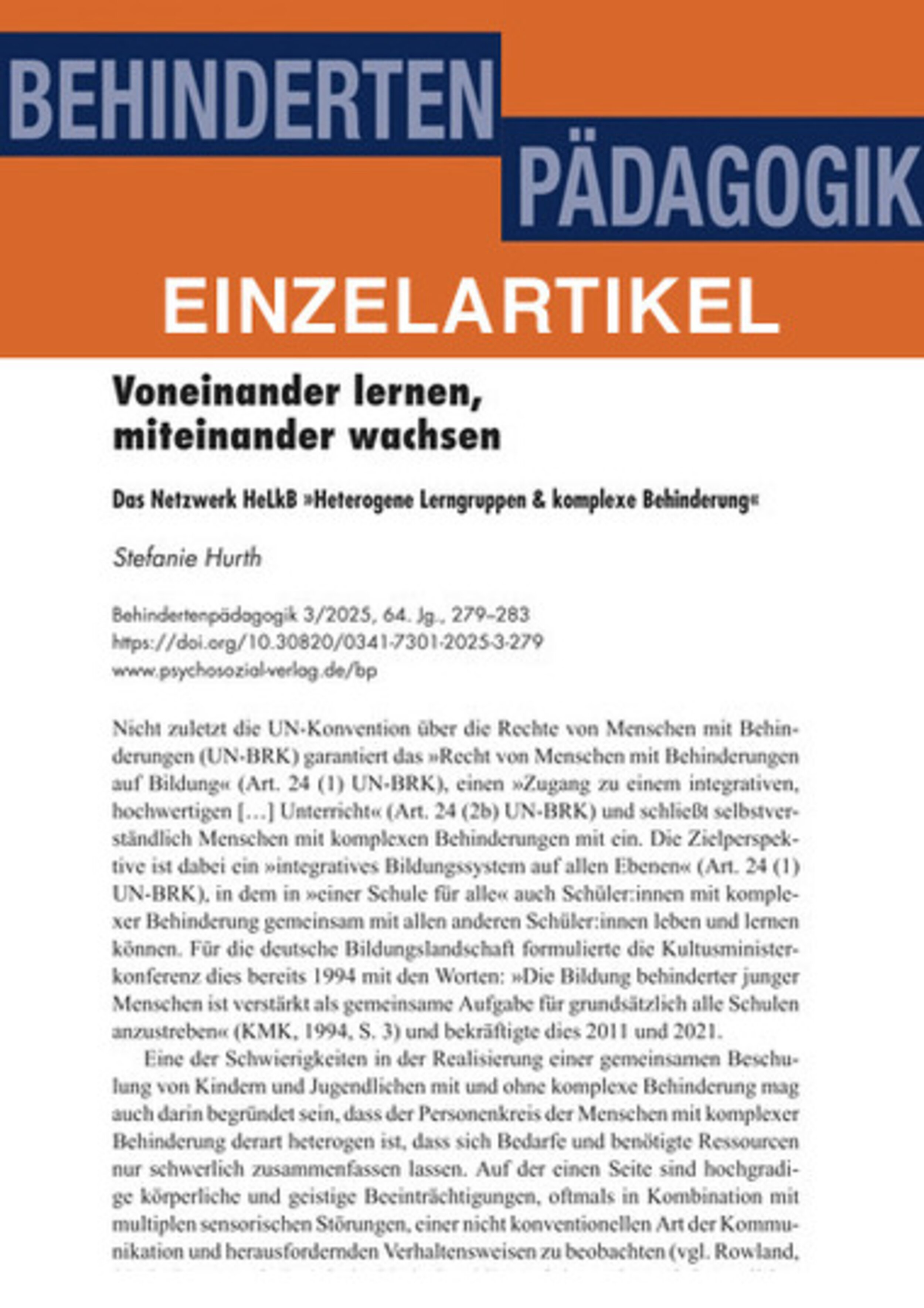 Das Netzwerk HeLkB »Heterogene Lerngruppen & komplexe Behinderung«Monika Glück-ArndtS. 285–292Rezension von: Reinhard Stähling (2025). Entwicklungsschritte einer Schule im Brennpunkt (PDF)
