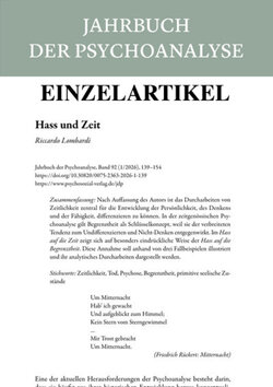 Nach Auffassung des Autors ist das Durcharbeiten von Zeitlichkeit zentral für die Entwicklung der Persönlichkeit, des Denkens und der Fähigkeit, differenzieren zu können. In der zeitgenössischen Psychoanalyse gilt Begrenztheit als Schlüsselkonzept, weil sie der verbreiteten Tendenz zum Undifferenzierten und Nicht-Denken entgegenwirkt. Im Hass auf die Zeit zeigt sich auf besonders eindrückliche Weise der Hass auf die Begrenztheit. Diese Annahme soll anhand von drei Fallbeispielen illustriert und ihr analytisches Durcharbeiten dargestellt werden.