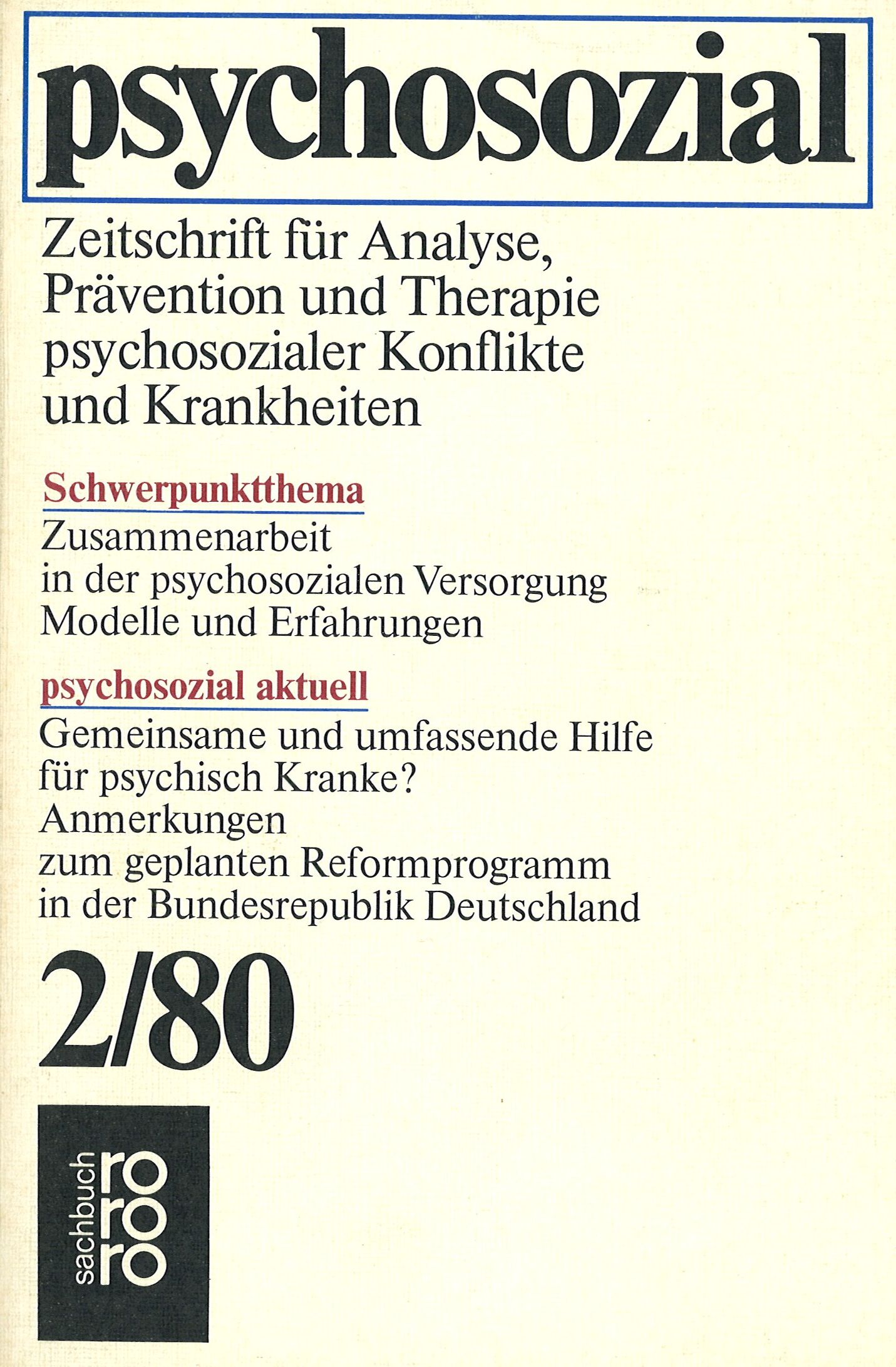 psychosozial 2/80: Psychosoziale Arbeitsgemeinschaften