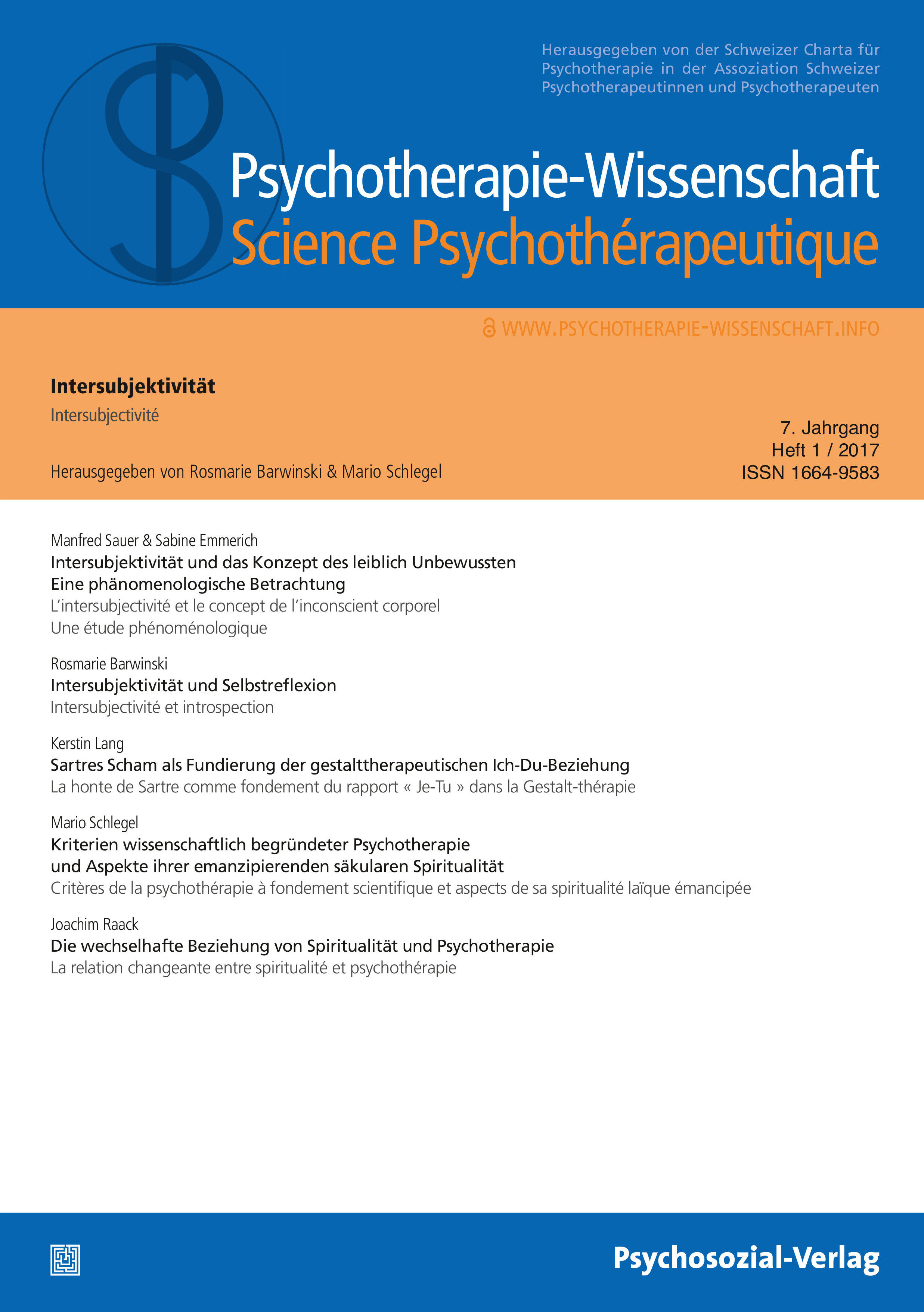 Psychotherapie-Wissenschaft 1/2017: Intersubjektivität, hg. von Rosmarie Barwinski und Mario Schlegel