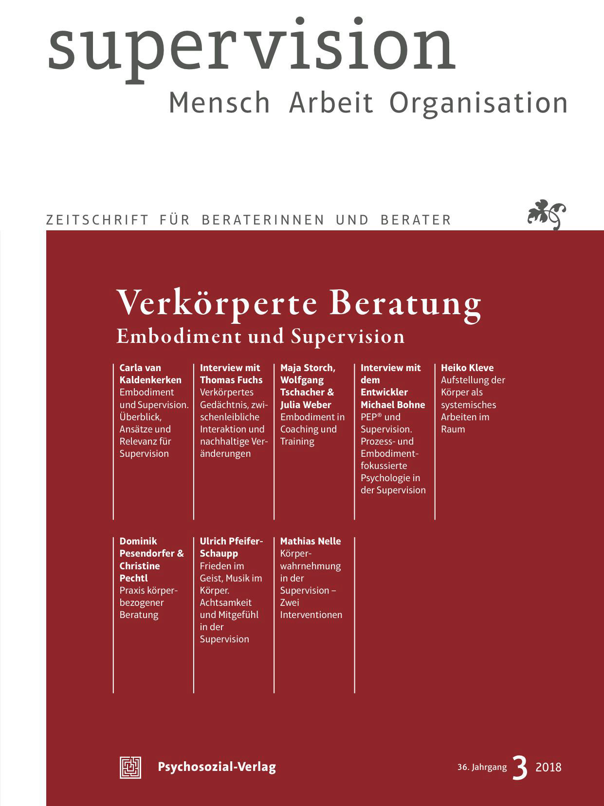 Supervision Jhg: 36, 3 (2018), 30-34Christine Pechtl Dominik PesendorferS. 35–40Praxis körperbezogener Beratung (PDF)