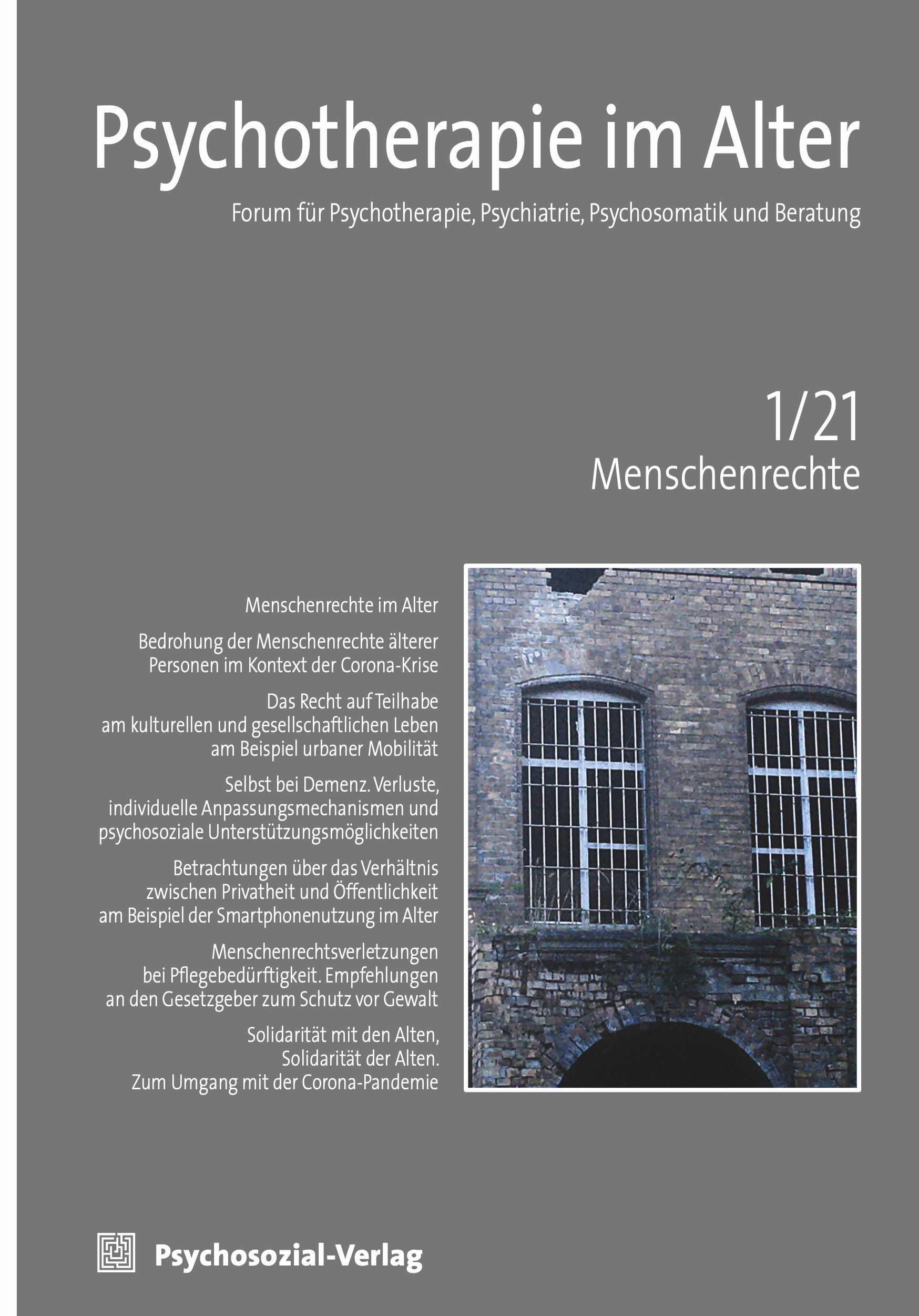 Das Themenheft beinhaltet Beiträge im Spannungsfeld von Menschenrechten, Alter und Psyche/Psychotherapie sowie deren Einordnung und Diskussion vor dem Hintergrund der aktuellen Corona-Pandemie. Hierbei werden sowohl einzelne Menschenrechte herausgegriffen als auch Menschenrechte im Allgemeinen in Bezug auf spezielle Problemlagen betrachtet. Zudem werden Konzepte, Projekte und eine Institution vorgestellt, die darauf abzielen, diesbezügliche Missstände zu reduzieren und Lösungsansätze zu bieten.